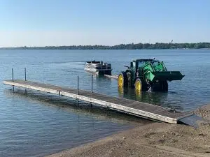 A photo posted to social media this week showed a tractor helping to pull a boat out of West Battle Lake. The photo has been shared hundreds of times with others commenting they may need to consider doing the same thing.