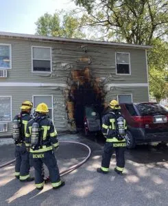 Police Officers arrived and found that the vehicle was within 5 feet of the structure and siding was beginning to melt. The vehicle owner and bystander had attempted to extinguish the fire with fire extinguishers. Police immediately started evacuating the building. Firefighters arrived as residents were evacuating and suppressed the fire and checked for extension inside the building.