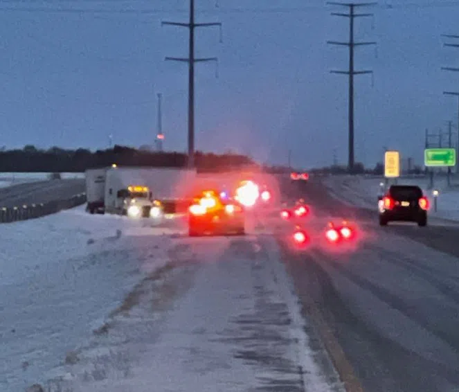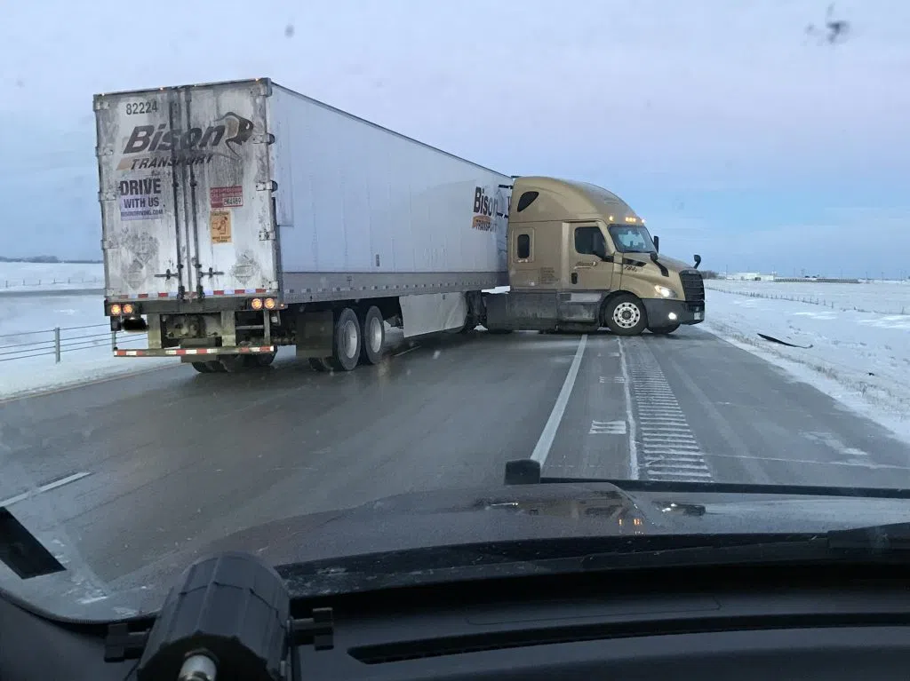 Travelers on I-94 this morning near mile marker 33 North West of Rothsay will experience a bit of a slowdown as State Patrol and Richland County Sheriff’s Deputies work to free a jackknifed semi in the median.