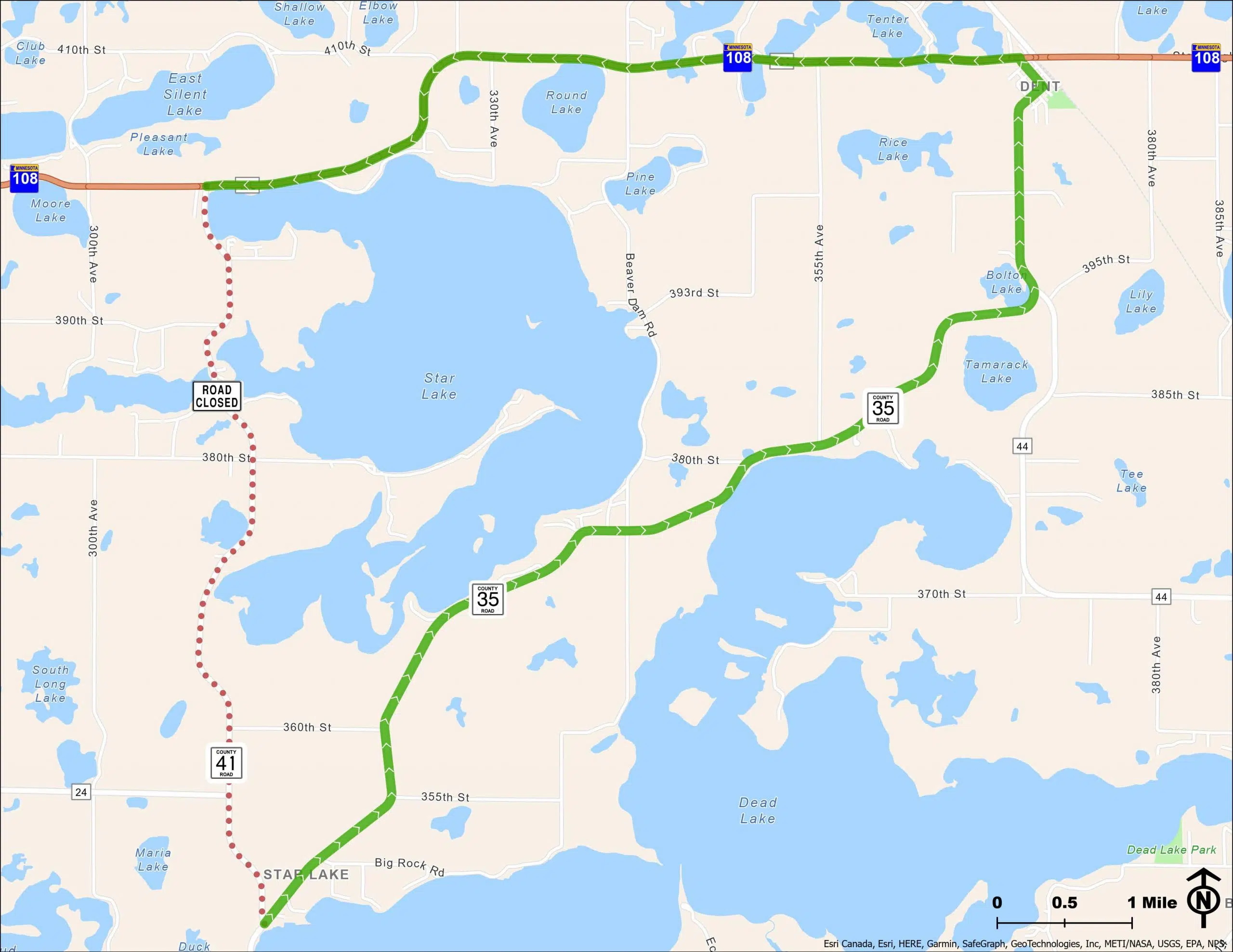 Otter Tail County, MN– The County Highway 41 bridge at Star Lake, near Dent, is set to be rebuilt beginning April 4th. The bridge was set on fire in September of 2020.
