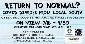 Tomorrow (Friday, August 12th), from noon-2pm, the public is welcome to attend an open house and informal question and answer session dealing with the exhibition “Return to Normal?: COVID Diaries from Local Youth” at the Otter Tail County Historical Society.