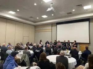 This year’s Summit focused on the disaster continuum, from emergency response to short and long-term recovery, and kicked off with a first responder panel sharing details about their immediate priorities and actions. Participants included Sheriff’s Office Chief Deputy Reed Reinbold, Fergus Falls Police Sergeant Connor West, Fergus Falls Fire Department Safety Training Officer Dan Lipson, Perham Health’s Director of EMS and Emergency Management Jim Rieber, Bjorn Ringdahl of Ringdahl Ambulance Services, Inc., Ottertail City Maintenance Coordinator and Emergency Manager Justin Lohse, and Otter Tail County Dispatcher and Battle Lake Rescue Squad member Derek Mansker.