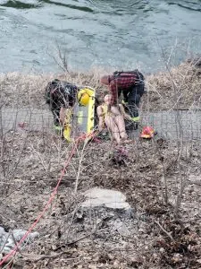 The training session took place by the Riverwalk near downtown, where Fergus Falls firefighters practiced using ropes, harnesses, and other rescue equipment to safely navigate various low angle rescue scenarios.