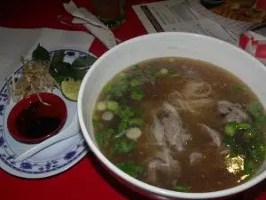 This mouthwatering Pho was served in what seemed like a never ending sized bowl, served with lime hot chili sauce hoisin sauce mint bean spouts and limes.