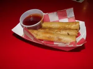 Sweet Chili Boneless Chicken Stir-Fry which came with white rice and homemade wontons, and an appetizer of Sone’s special Spicy Pork Eggrolls.