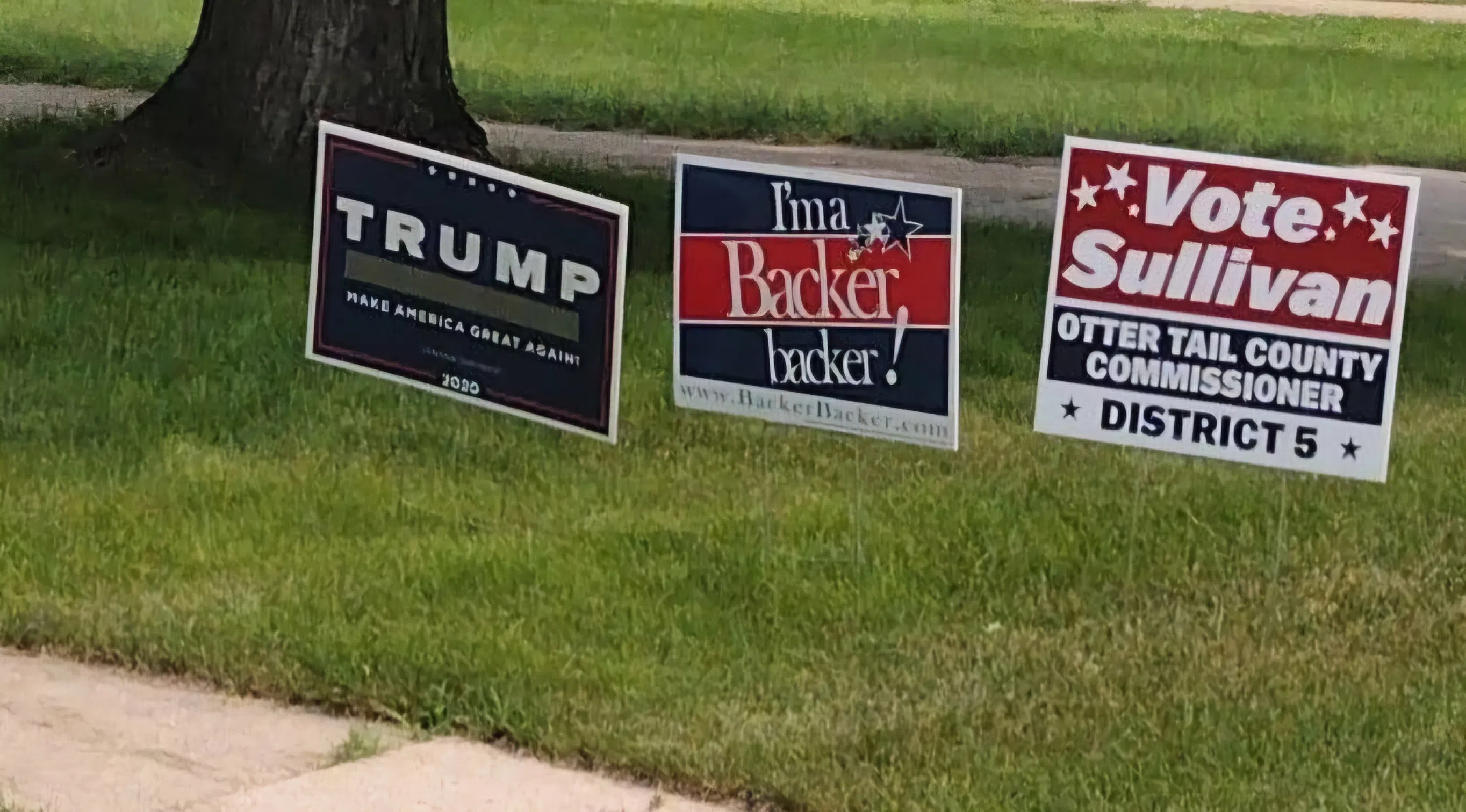 Image of political signage seen in Fergus Falls (Zakk Daniels, KBRF Radio News)