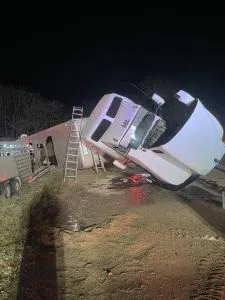 The Otter Tail County Sheriff’s Department responded to the crash at around 9:05 Tuesday evening (October 29th). According to officials, a semi hauling 37 head of cattle overturned while attempting to turn off of westbound County Highway 35 onto 360th Street.