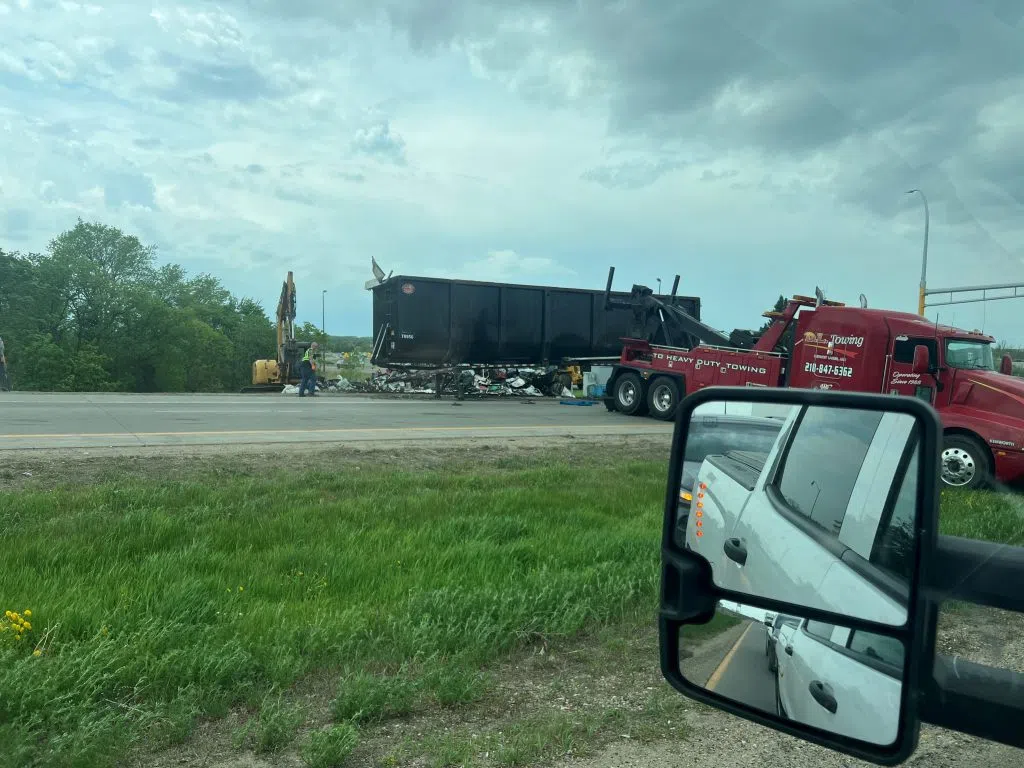According to the State Patrol the semi was making a turn from Highway 59 onto eastbound Highway 10 when it tipped over.