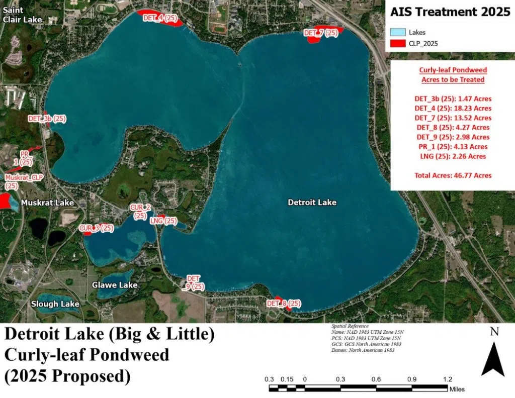 The Full Notice and Maps of the treatment areas can be found on our website: AIS Treatment Notices & Maps – Pelican River Watershed District (prwd.org)