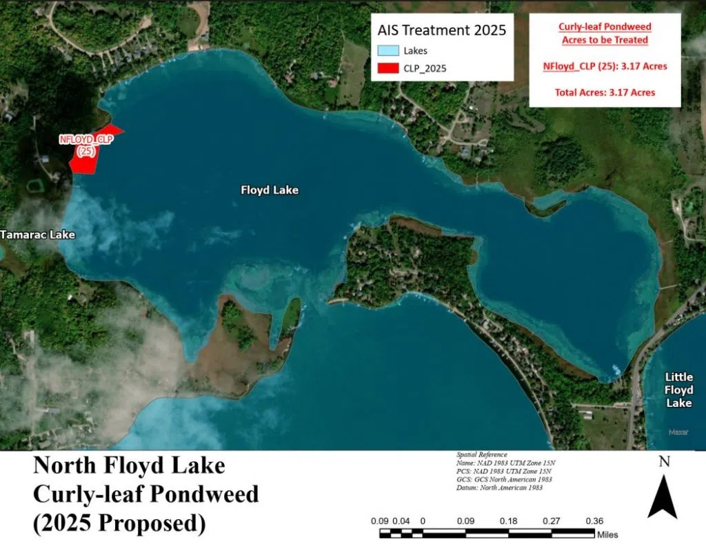 The Pelican River Watershed District will be conducting an aquatic invasive species control project involving herbicide treatments of Curly-leaf pondweed and Flowering Rush infestations for lakes North Floyd, Big and Little Detroit, Curfman, Sallie, Melissa, and Muskrat.