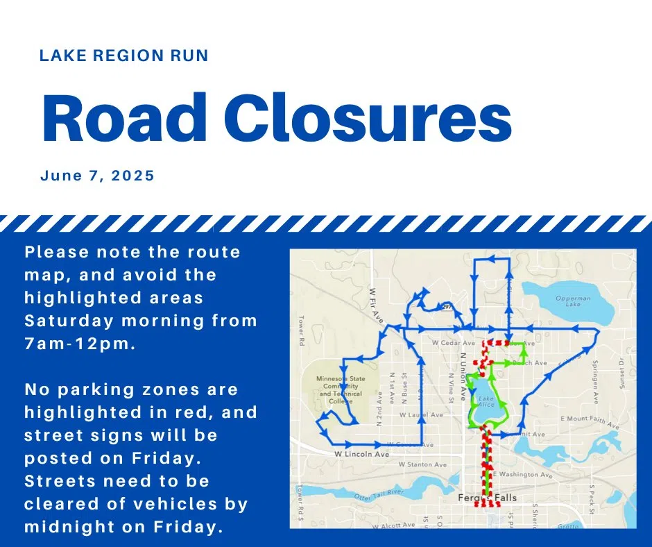With all of the runners out on the course it will affect several roads around town, Gustafson, “The biggest ones are Mill Street and Lake Alice. So, if you’re up in those areas on Saturday morning we’re going to have about 400ish people on the roads up there so if you’re planning to make a quick jet through over there it’s not going to be quick. So just make sure you’re paying attention to essentially the North and South Road from Mill Street all the way through Lake.”