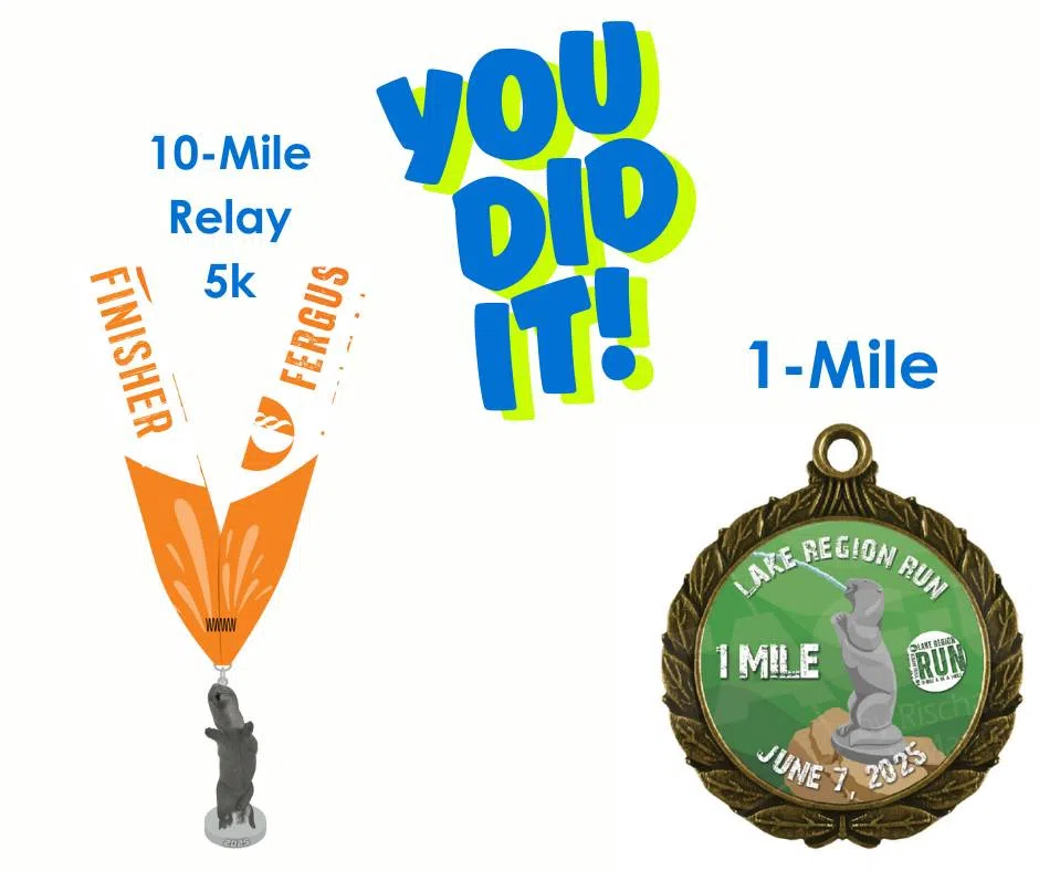 This year’s finishers medals are inspired by the otters at the splash pad, Race Director Karoline Gustafson;” the medal for this year is the Otters fountains that are down at the splash pad in downtown Fergus Falls that were made by Blayze Buseth at the creation shop. So, it’s pretty cool, there’re 3D metal this year, and they can actually stand on their base.”