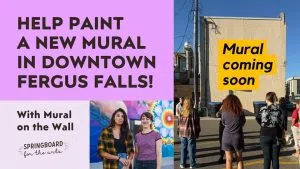 Fergus Falls, MN – On Tuesday and Wednesday, June 24th and 25th, community members are encouraged to help paint a new mural on the Springboard for the Arts building in downtown Fergus Falls.