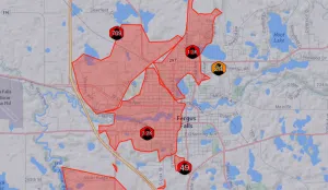 At about 12:20 this afternoon (August 24), thousands in Fergus Falls and Pelican Rapids lost power. According to the Otter Tail Power Company outage map, around 4.4 thousand customers are affected in and to the south of Fergus Falls, and another thousand in Pelican Rapids. The Lake Region Electric outage map shows more small outages between the two cities.