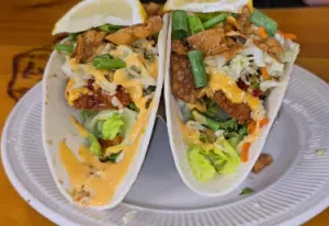 Otter-famous Fish Tacos with fresh slaw and creamy sauces